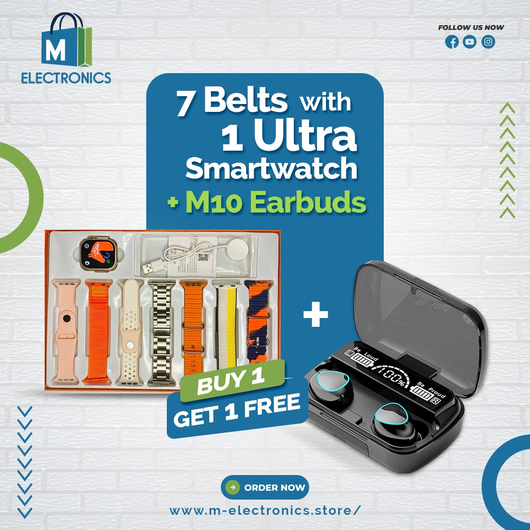 7 Belts With 1 Ultra Smartwatch + M10 Earbuds