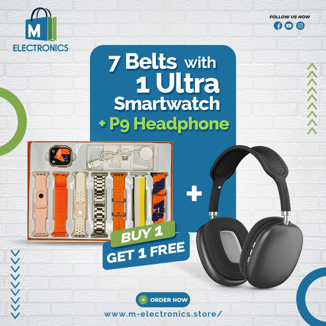 9 in 1 ( 7 Blet with Ultra Smartwatch+ P9 Headphone )( Pack of 2 )