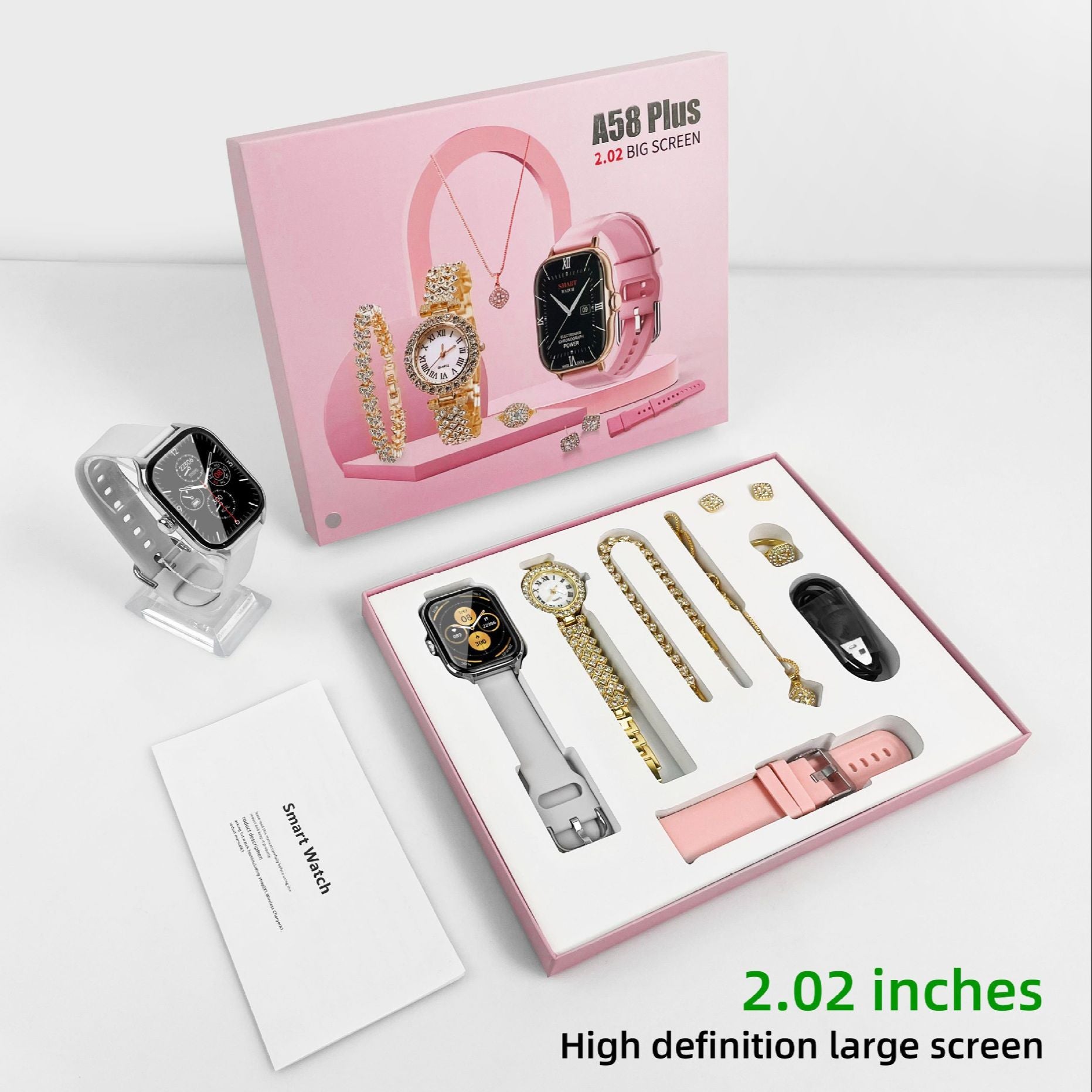 A58 Plus Smart Watch With jewelry Set ( 8 IN 1 Set )