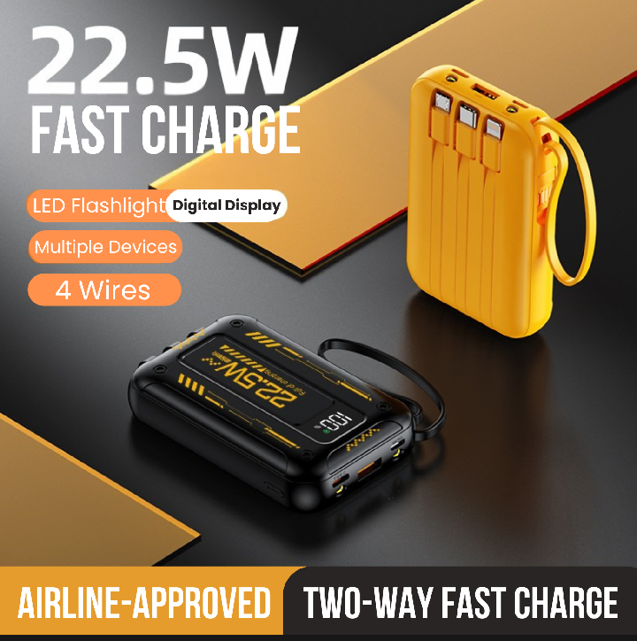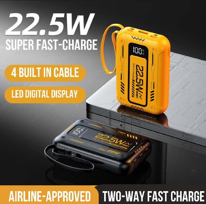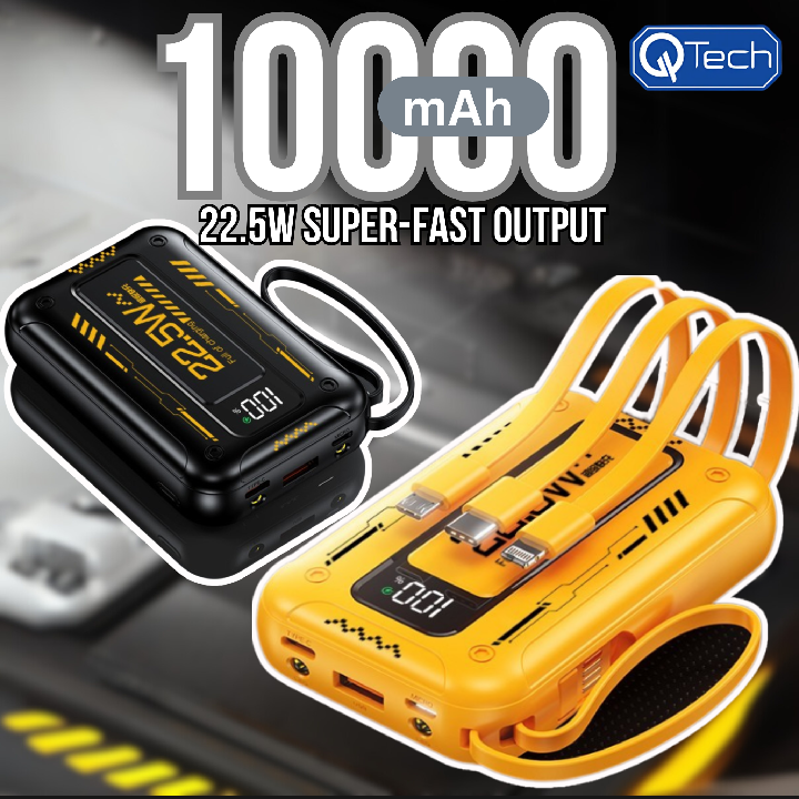 Power up quickly on the go with the QTech Q123 10000mAh power bank featuring 22.5W fast charging.