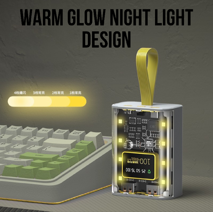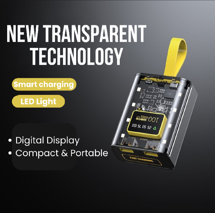 - Transparent Powerbank Shell: Stylish design showcasing internal components.