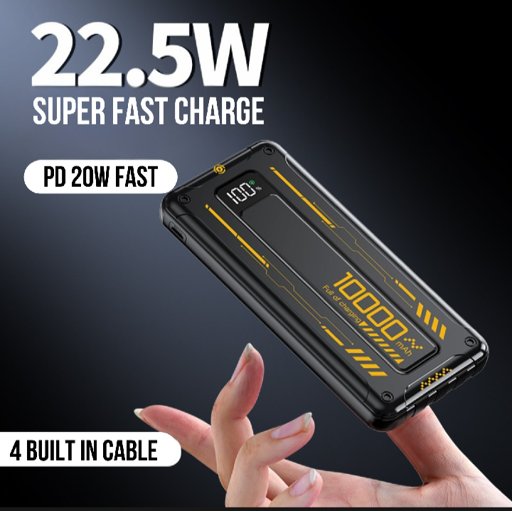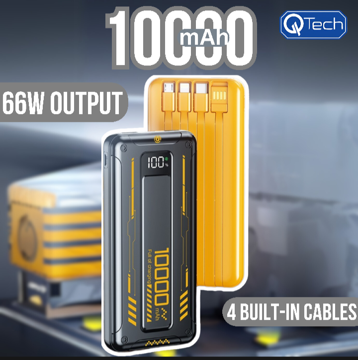 QTech Q126 10000mAh 66W PD Fast Charging Power Bank with 4 Cables